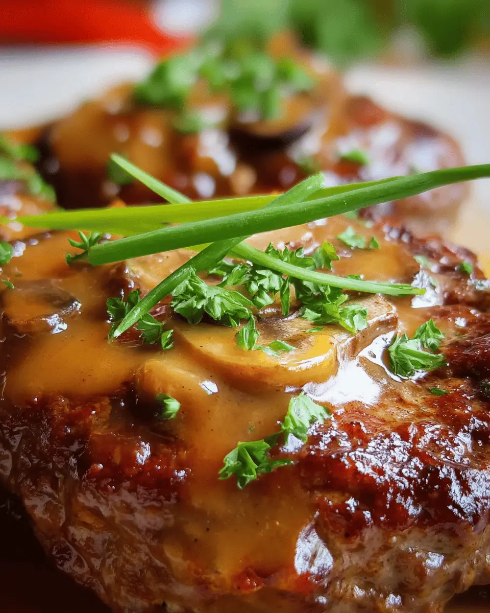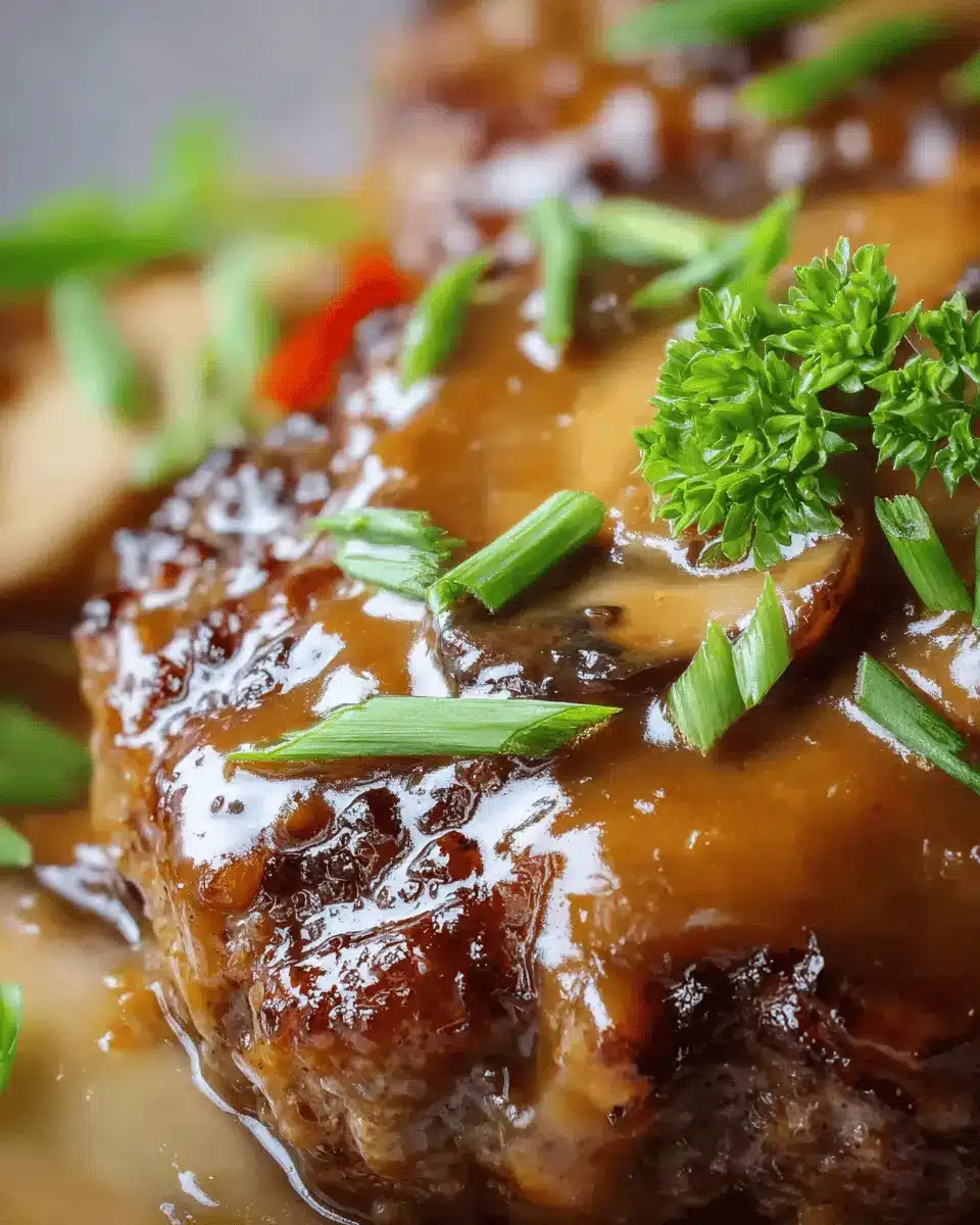 For a visually appealing plate, slice the Amish Salisbury Steak and arrange it on a warm dinner plate, drizzling extra mushroom gravy on top. Add a generous scoop of mashed potatoes on one side and a portion of green beans or corn on the other. Garnish with fresh herbs like parsley for a pop of color. Don’t forget an extra sprinkle of cracked pepper for added flair! This restaurant-style presentation will impress guests and make dinner feel special.