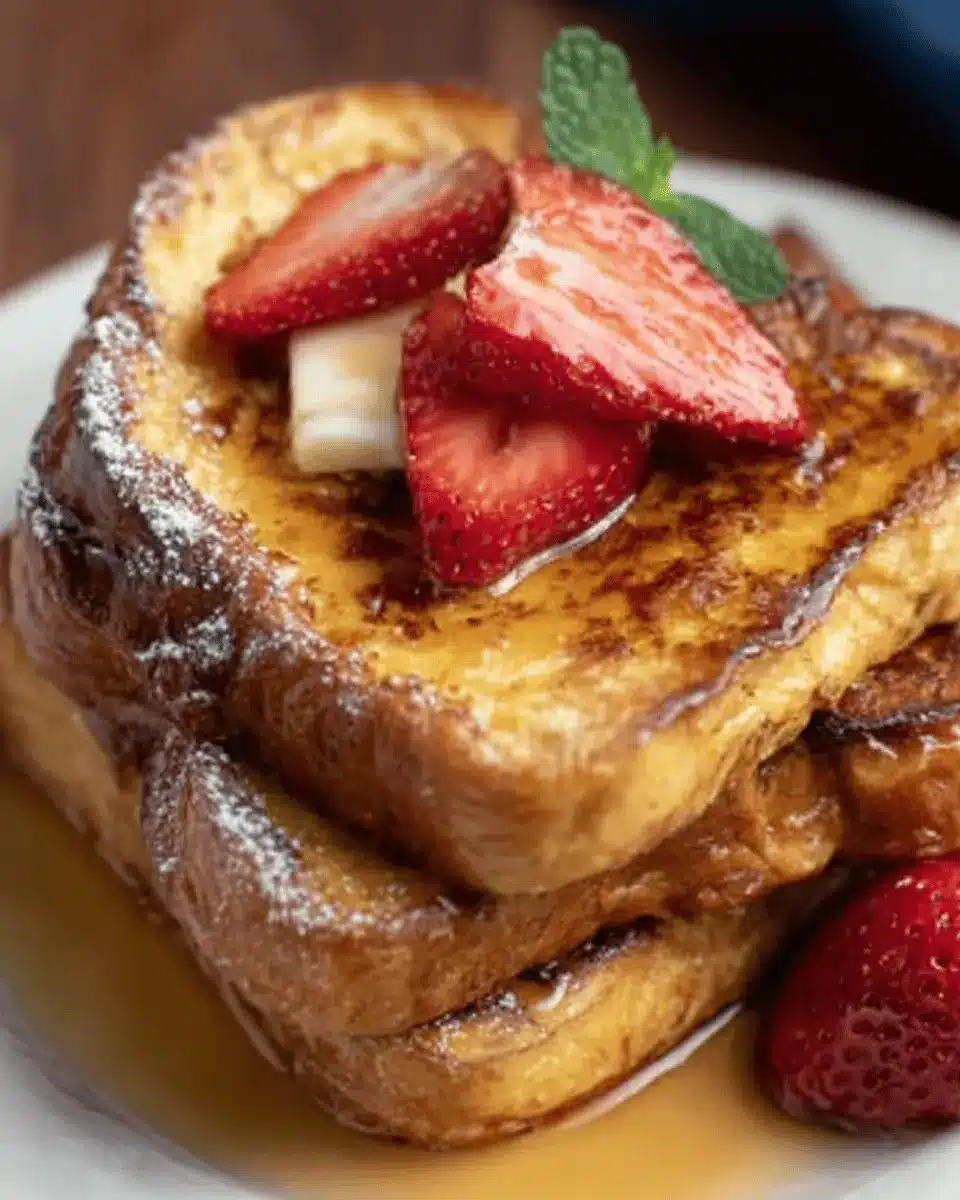 You can’t go wrong with a drizzle of warm maple syrup, perfectly complementing the sweet and buttery flavor of the brioche. Add a handful of fresh berries—strawberries, blueberries, or raspberries—for a pop of color and a refreshing burst of flavor. This classic combination is not only delicious but also visually appealing!
