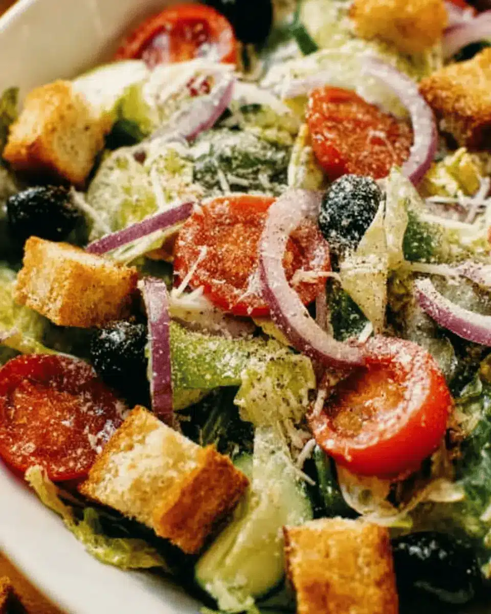 Absolutely! The Copycat Olive Garden Salad can be prepared in advance. Just combine all the fresh ingredients, except for the dressing, and store it in an airtight container in the refrigerator. When you’re ready to serve, simply toss it with the dressing for that fresh, zingy flavor. I recommend dressing it just before serving to keep the ingredients crisp and vibrant.