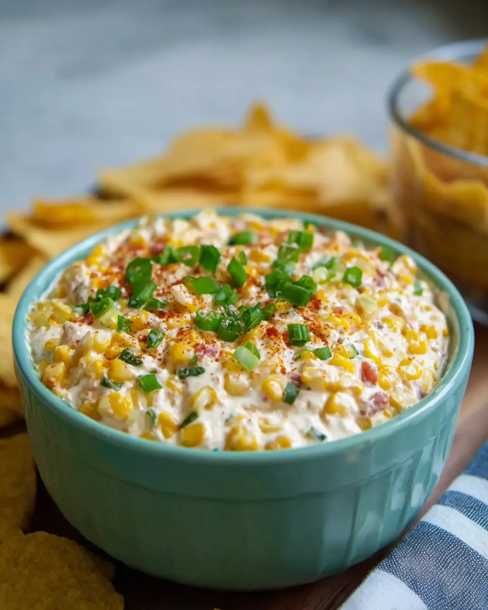 After your Corn Dip has chilled, grab those chips or veggies and get ready to serve! You can transfer the dip to a decorative serving bowl for a beautiful presentation. Not only does it look appetizing, but it also invites guests to dig in.