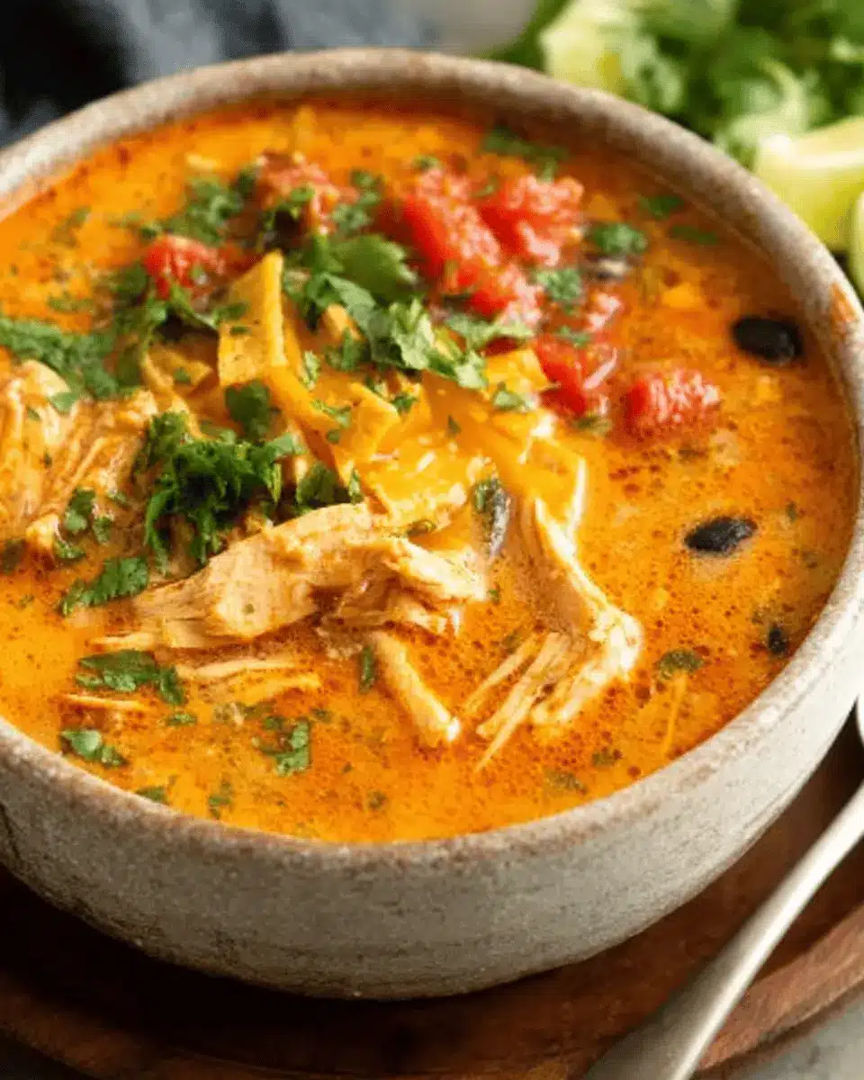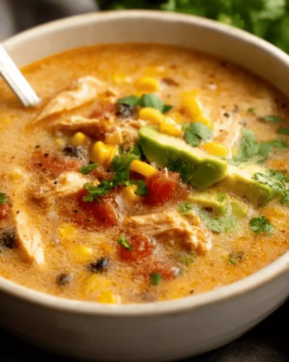 Before serving, take a moment to taste your creamy chicken tortilla soup. Adjust the seasoning as needed, adding more taco seasoning or hot sauce to suit your palate. For an extra touch, garnish with diced avocado, sour cream, or crushed tortilla chips—whatever tickles your fancy. Serve hot and enjoy the delightful flavors!