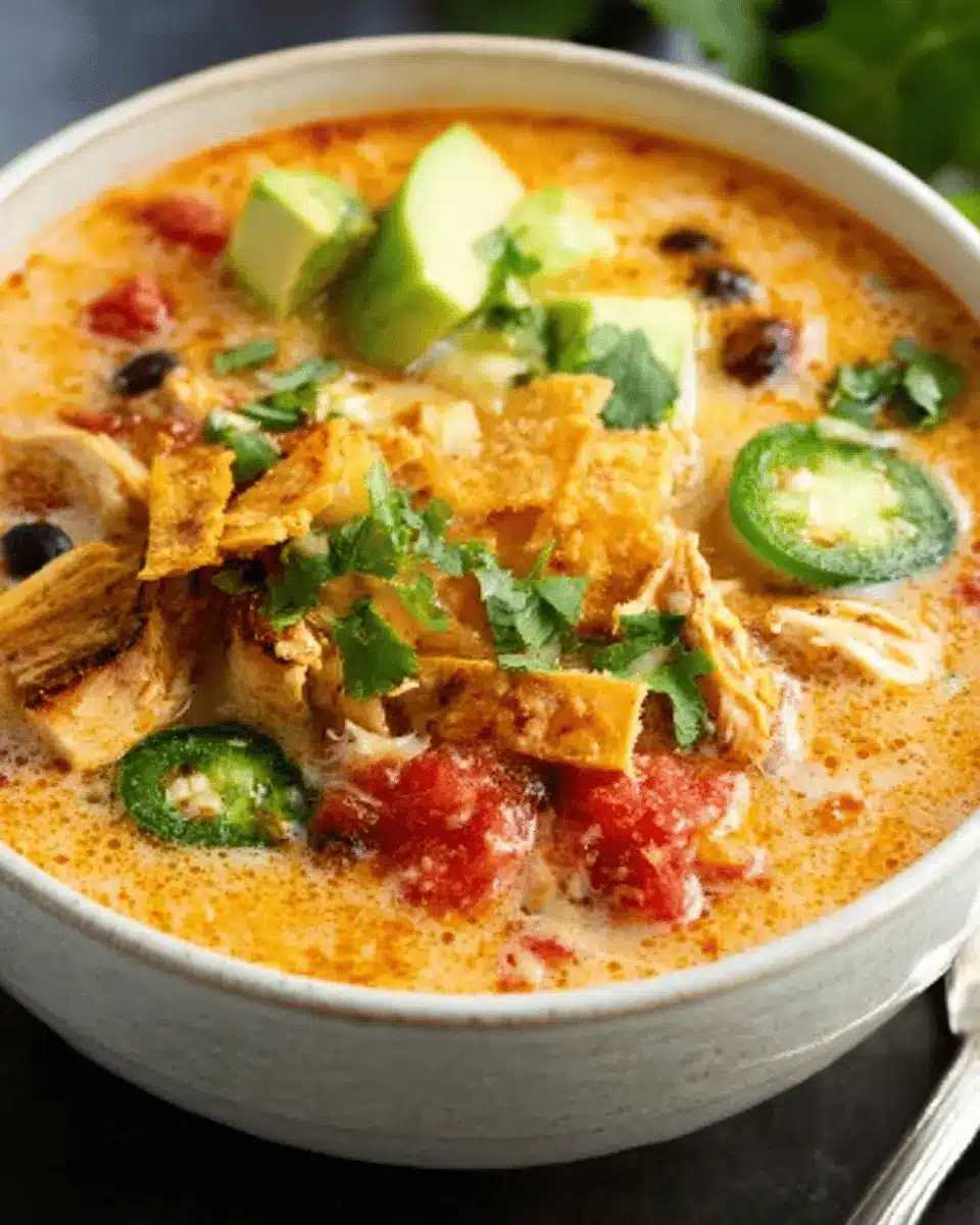 Elevate your creamy chicken tortilla soup with an array of delightful toppings. Consider adding: