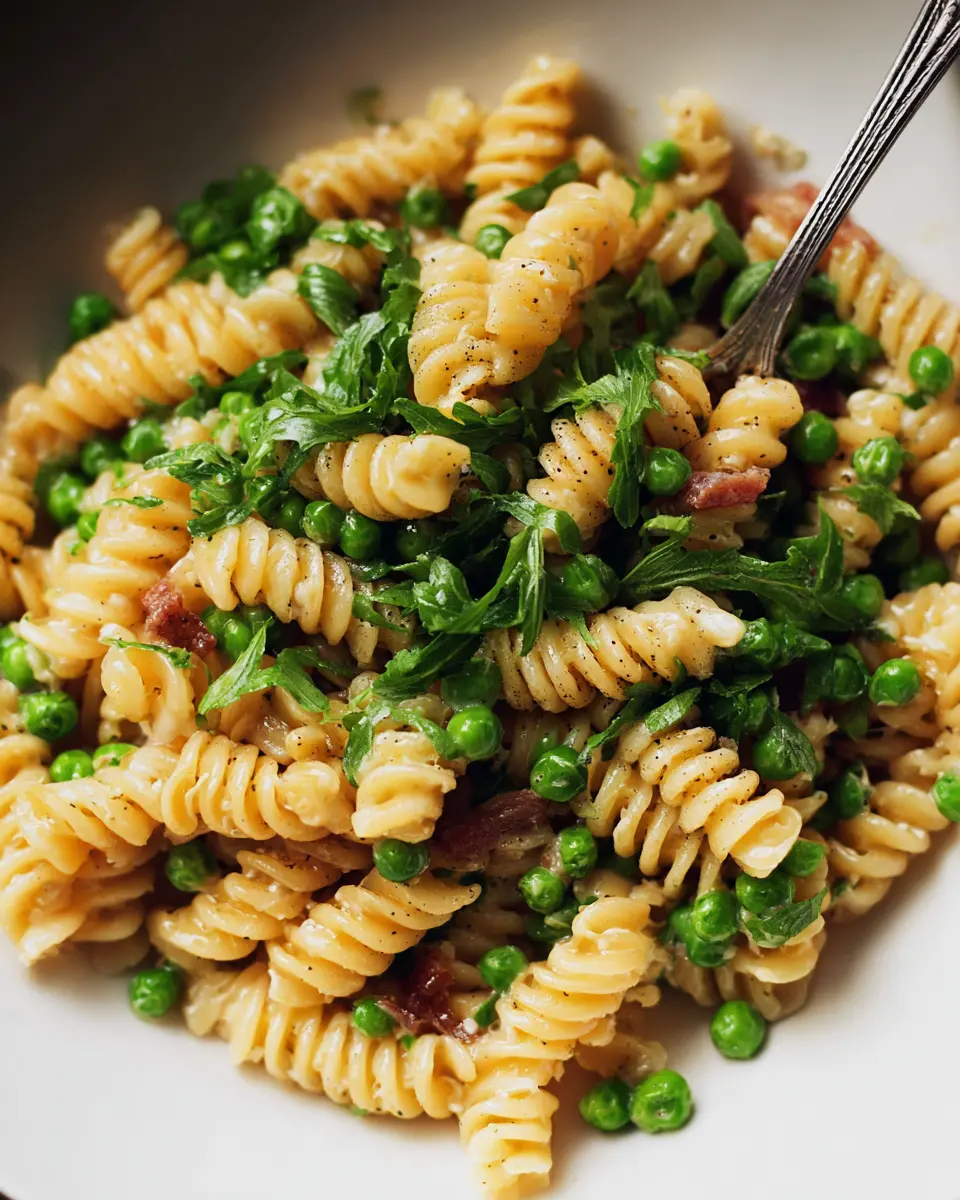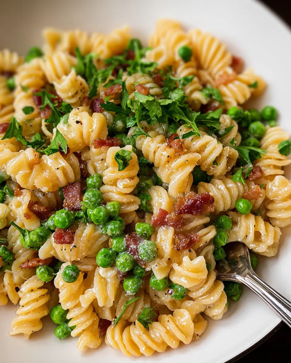 Now you have a delightful plate of creamy pasta with peas and pancetta, perfect for impressing friends or enjoying a cozy night in. Happy cooking!