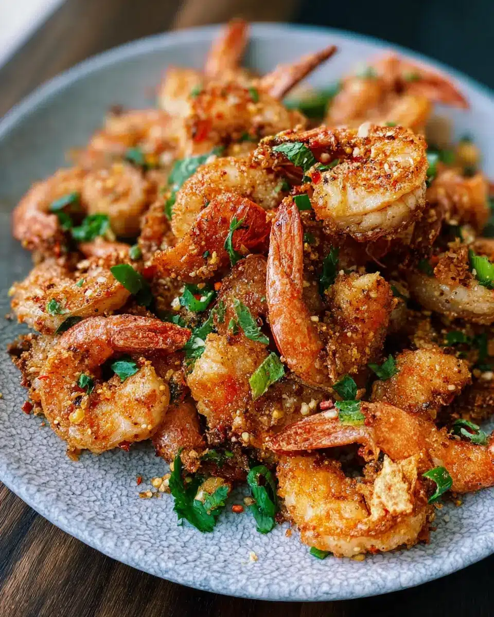 Make your Crispy Salt and Pepper Shrimp visually appealing by placing it on a bold, white platter that highlights the vibrant colors of the seasoning. Garnish with fresh herbs like cilantro or green onion for a pop of color. Consider serving with small bowls of dipping sauces like sweet chili or a spicy garlic sauce—this not only adds flavor but also gives your dish that fancy restaurant feel! Use chopsticks for an interactive touch, inviting guests to join in the fun!