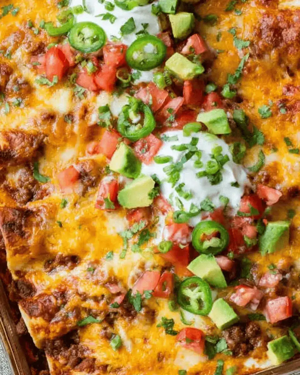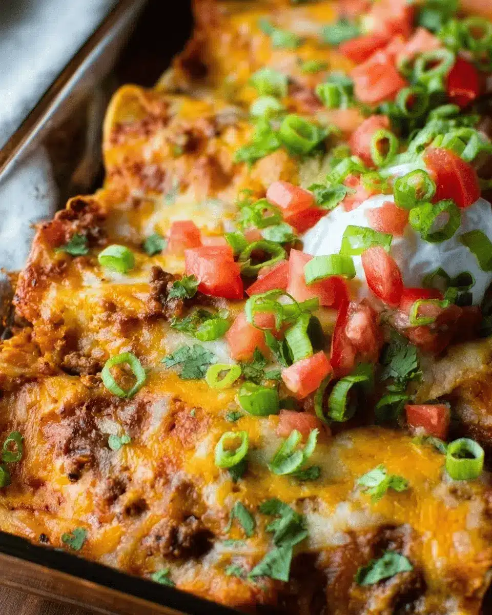 Once out of the oven, don’t forget those toppings! A dollop of sour cream, a scoop of pico de gallo, or a sprinkle of green onions will take your easy ground beef enchiladas to the next level. Enjoy your delicious meal — you’ve earned it!
