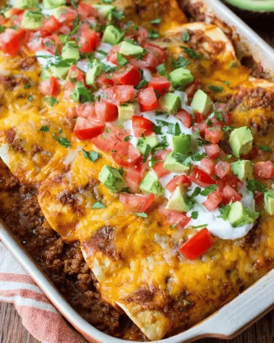 In conclusion, these easy ground beef enchiladas combine simplicity and flavor for a weeknight dinner perfect for any occasion. Made with wholesome ingredients and customizable toppings, they’re a crowd-pleaser that can also be frozen for future meals. Enjoy this delightful recipe with friends and family!
