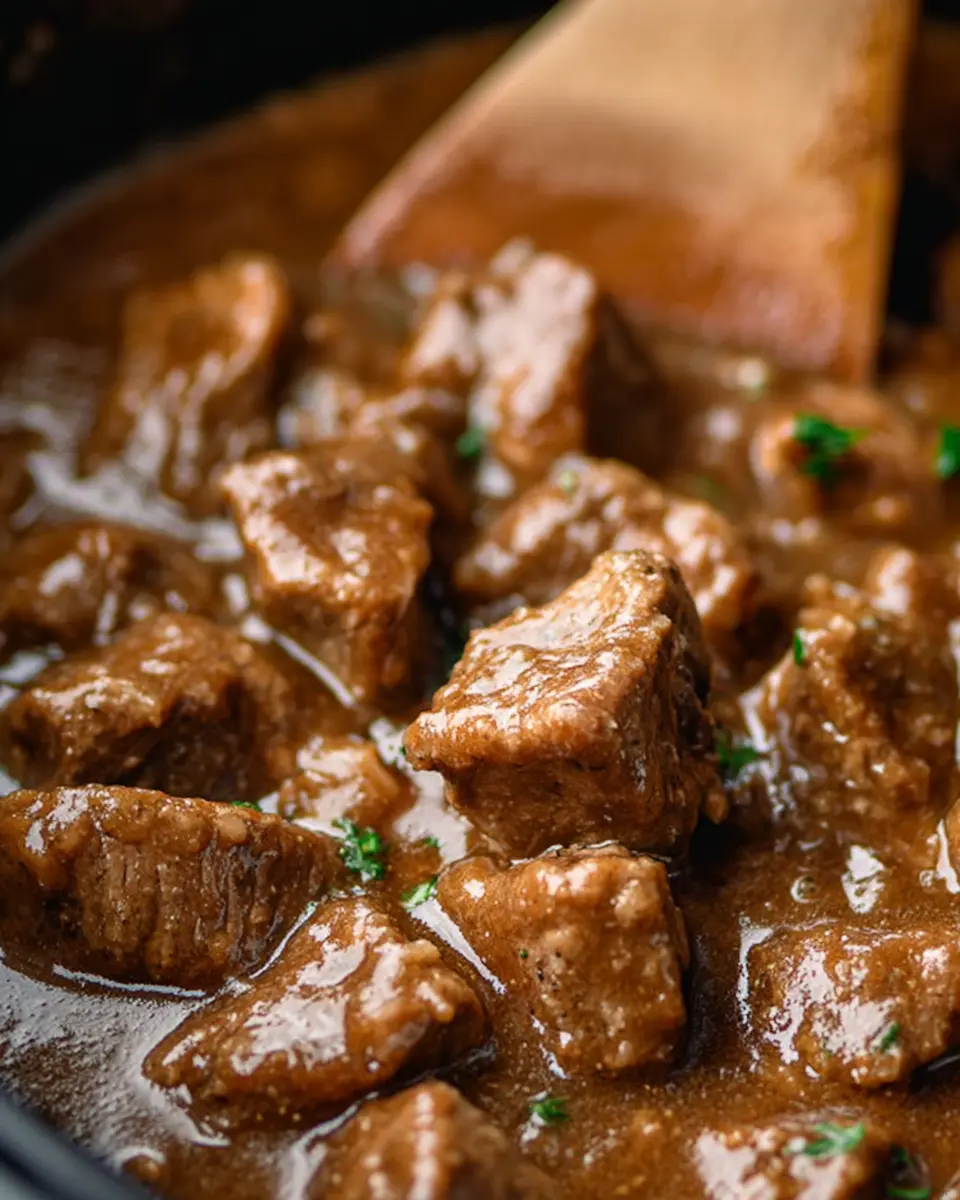 EASY Slow Cooker Beef Tips and Gravy Recipe