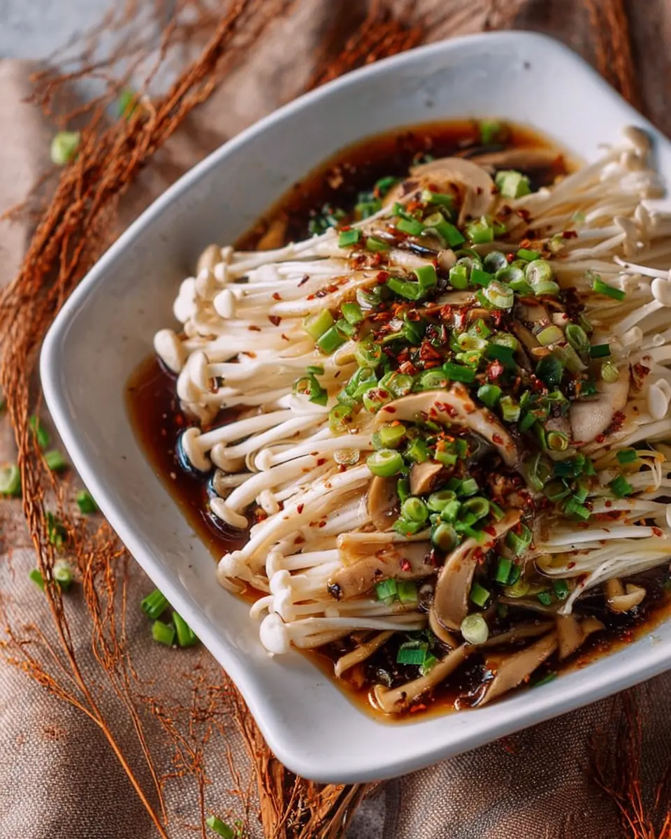 In just 20 minutes, you’ll have a delightful dish of enoki mushrooms with garlic scallion sauce ready to impress your friends or family. Perfect for when you need a quick, flavorsome addition to your meal!