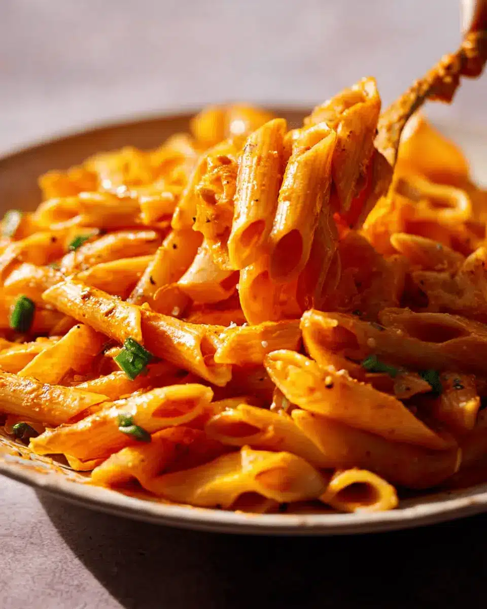 The final touch! Transfer your beautifully coated gochujang pasta to serving bowls. For an extra pop of flavor, sprinkle on some additional nutritional yeast, or even a handful of sesame seeds or fresh herbs if you have them. Serve immediately and enjoy the delighted expressions of your friends and family as they dig into this satisfying meal. Whether you’re enjoying a cozy night in or hosting a dinner party, this dish is sure to be a hit!