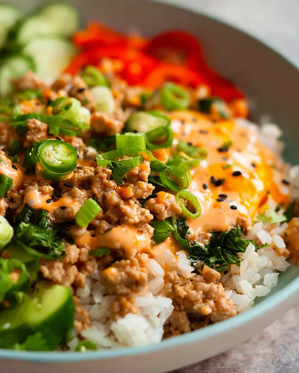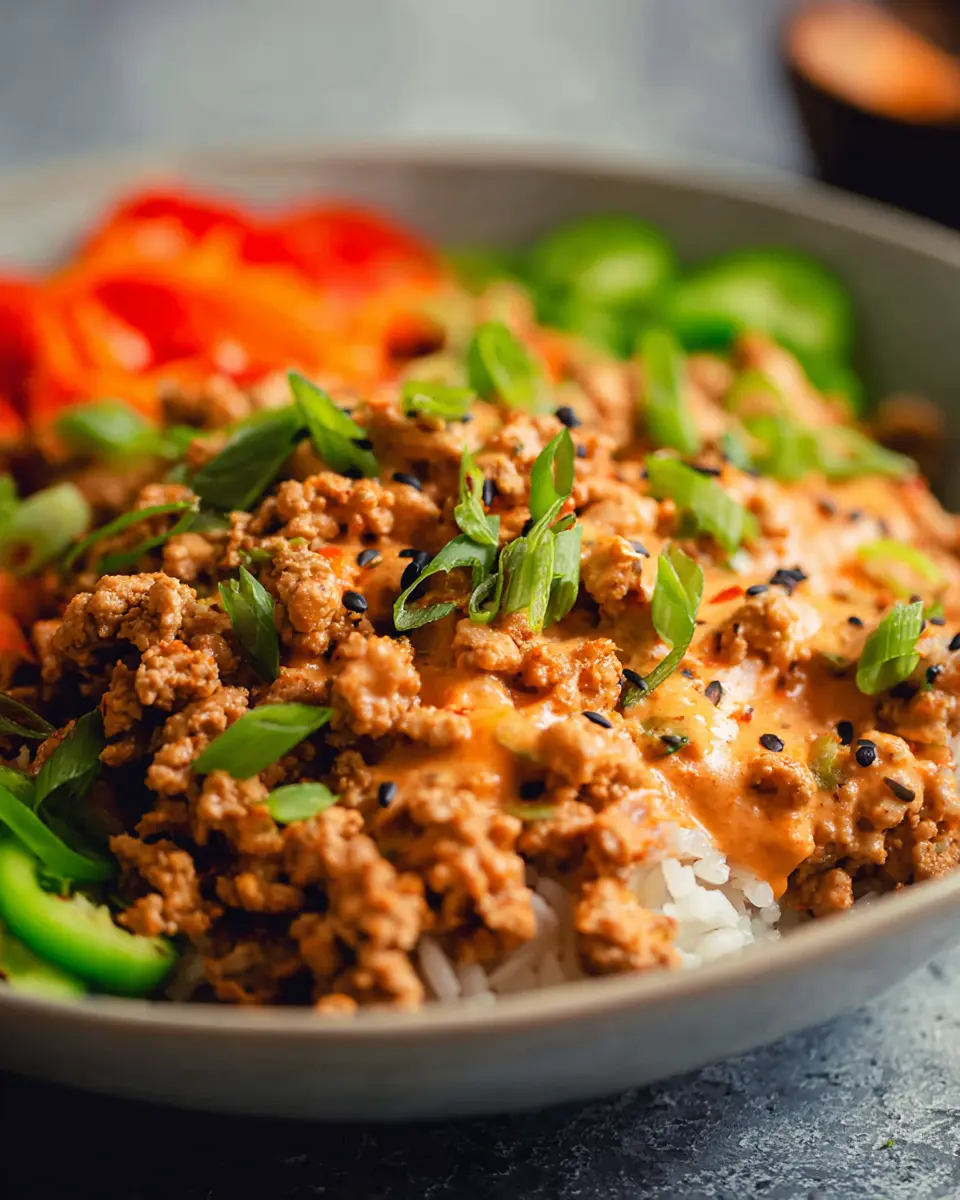 After making your ground turkey rice bowls, storing leftovers is a breeze. Keep the turkey mixture and any additional toppings separate in airtight containers in the refrigerator. The turkey will stay fresh for about 3-4 days, while the bang bang sauce can last up to a week. If you want to save it for later, you can freeze the turkey mixture—just remember to toss it with the sauce before freezing for optimal flavor!