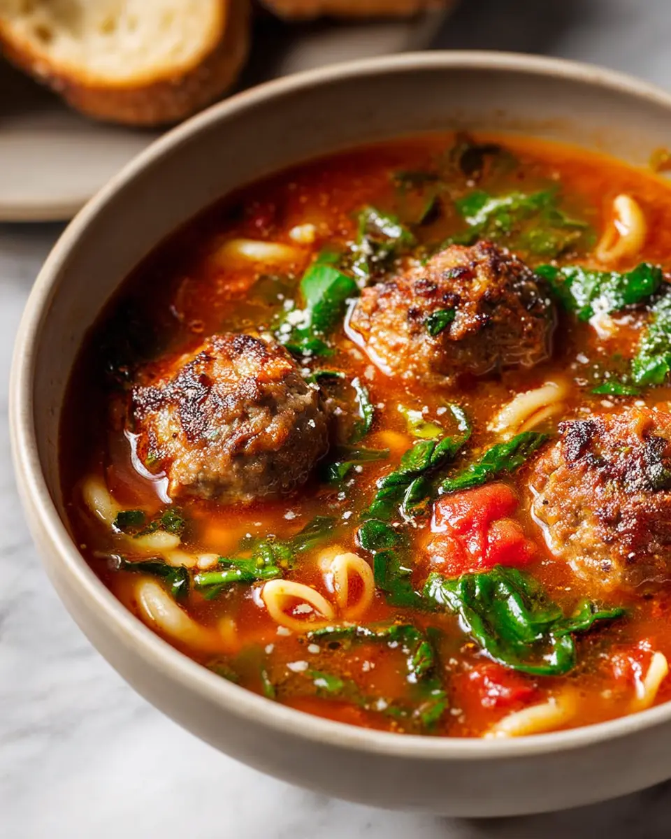 To elevate your Italian Meatball Soup experience, consider pairing it with a fresh side salad or some crusty garlic bread. A simple mixed greens salad dressed with a light vinaigrette complements the soup beautifully. For a more indulgent option, garlic bread topped with melted butter and herbs is perfect for dipping into the flavorful broth.
