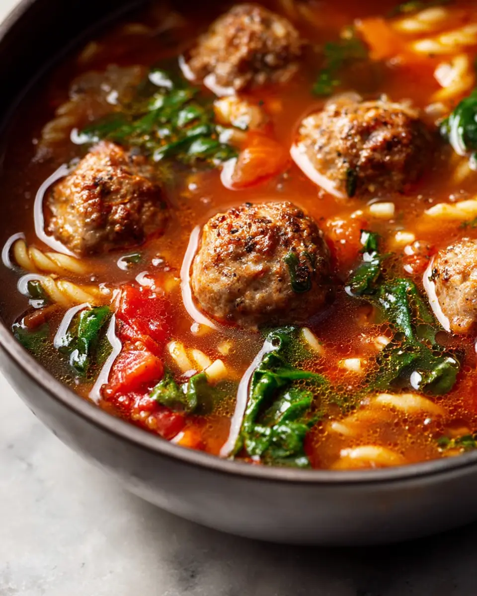 Absolutely! Using frozen meatballs is a great time-saver and works perfectly in this Italian Meatball Soup. Just make sure they’re fully cooked through before serving, ideally reaching an internal temperature of 165°F (74°C). If you’re in a pinch, opt for store-bought, fully-cooked meatballs for a quick and easy addition to your soup.