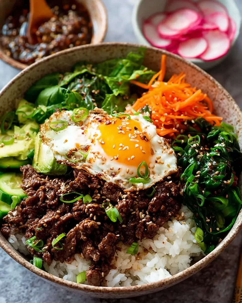 - Layer your ingredients: Start with a bed of fluffy rice, then add the bulgogi beef, followed by vibrant veggies like carrots and spinach.