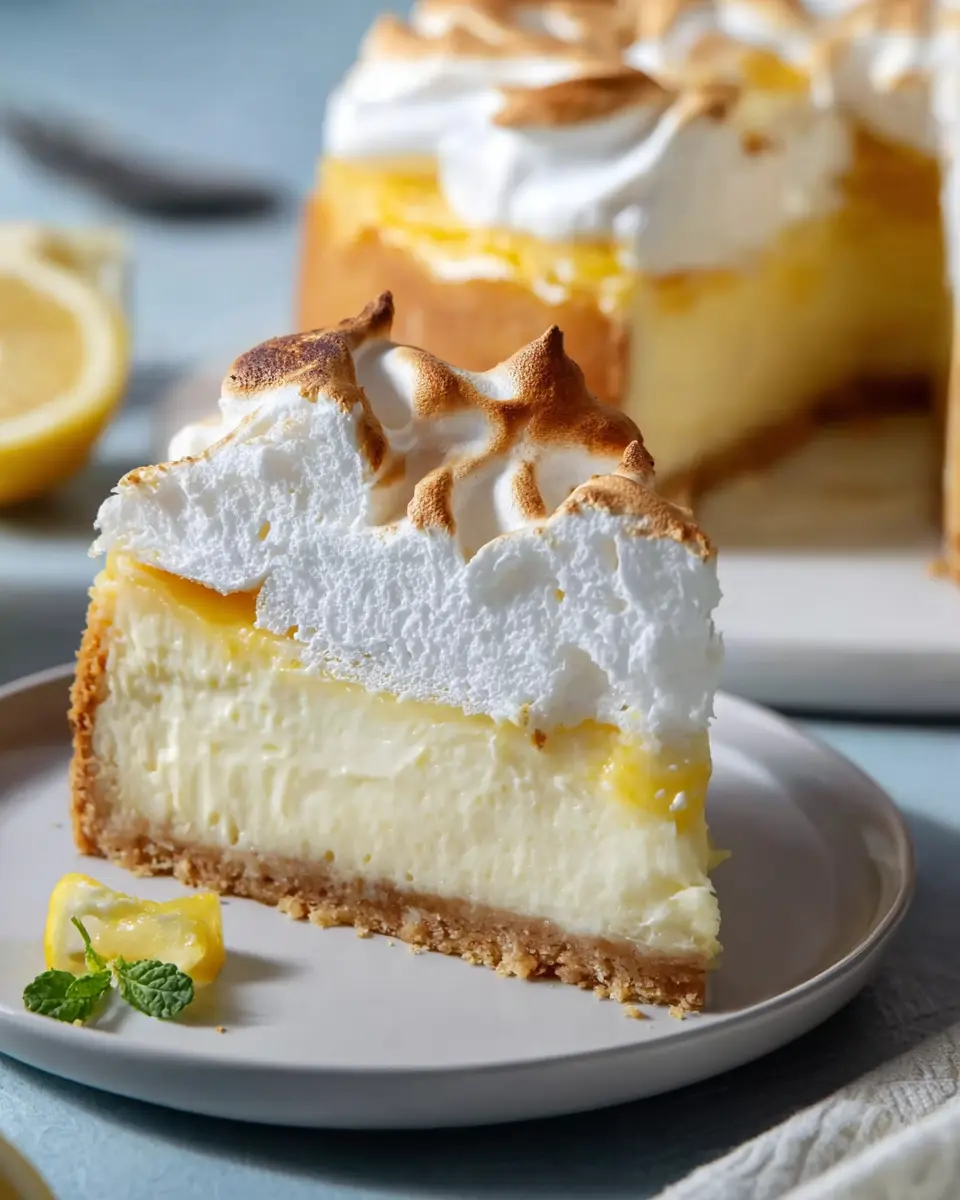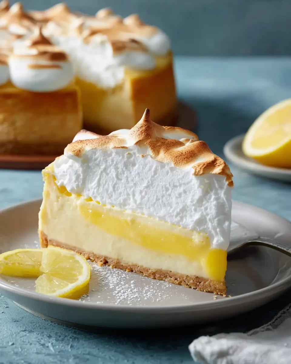 To present your lemon meringue cheesecake beautifully, consider using a clean white plate to highlight its vibrant colors. A simple dusting of powdered sugar can add an elegant touch. Garnish with fresh lemon slices or edible flowers for a pop of color. To elevate the dish further, a dollop of whipped cream or a drizzle of homemade lemon curd can enhance the overall experience.