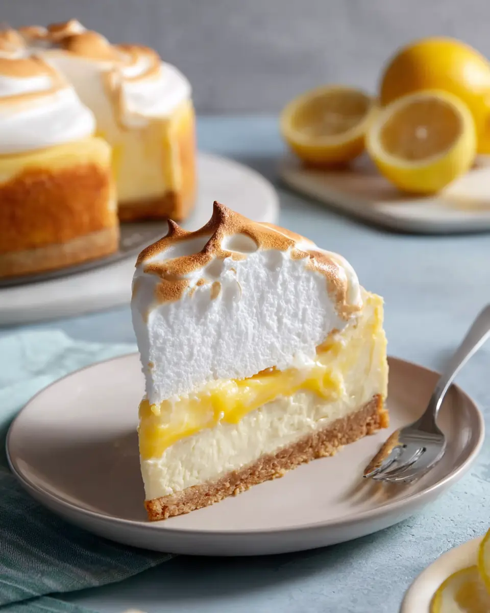 A delightful blend of flavors: lemon, meringue, and cheesecake