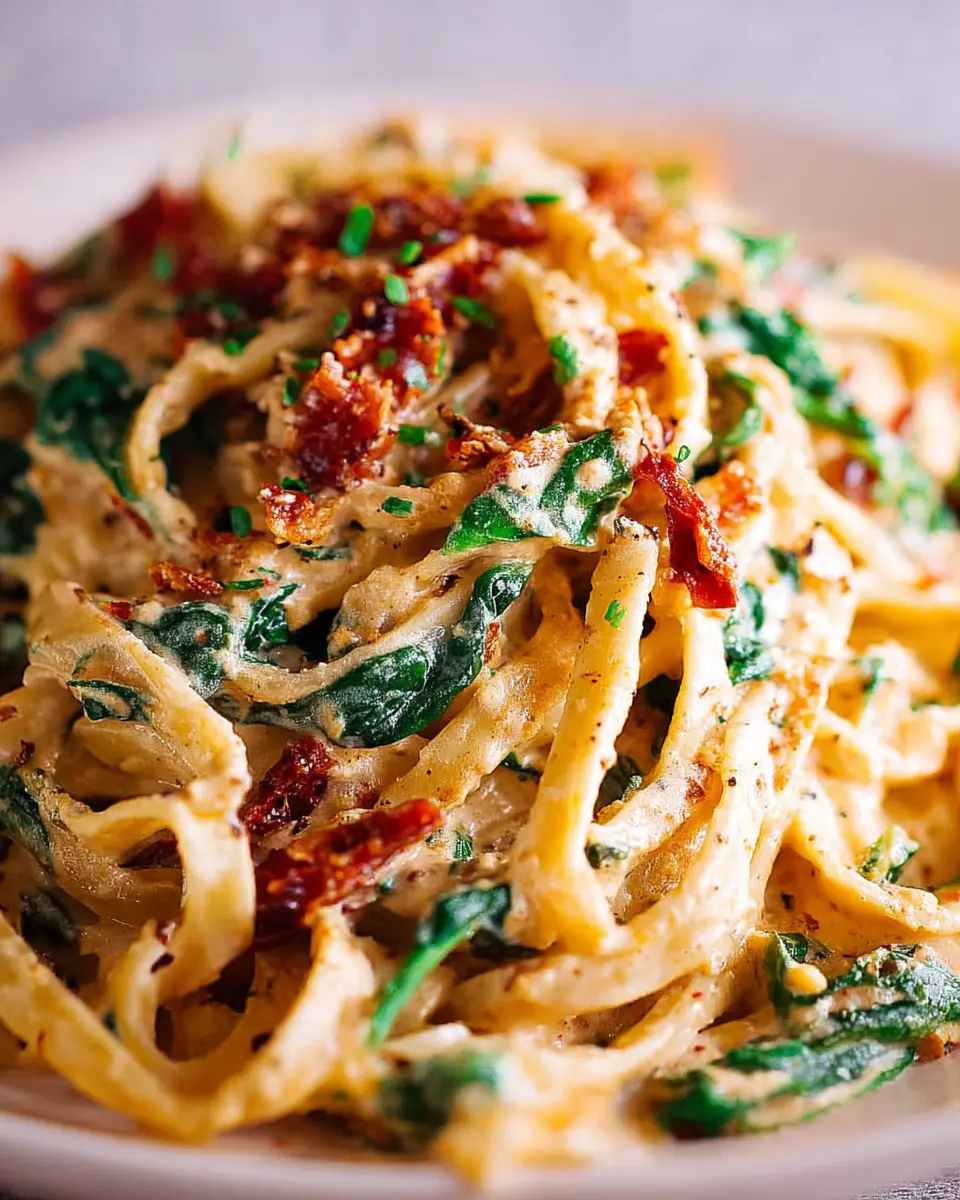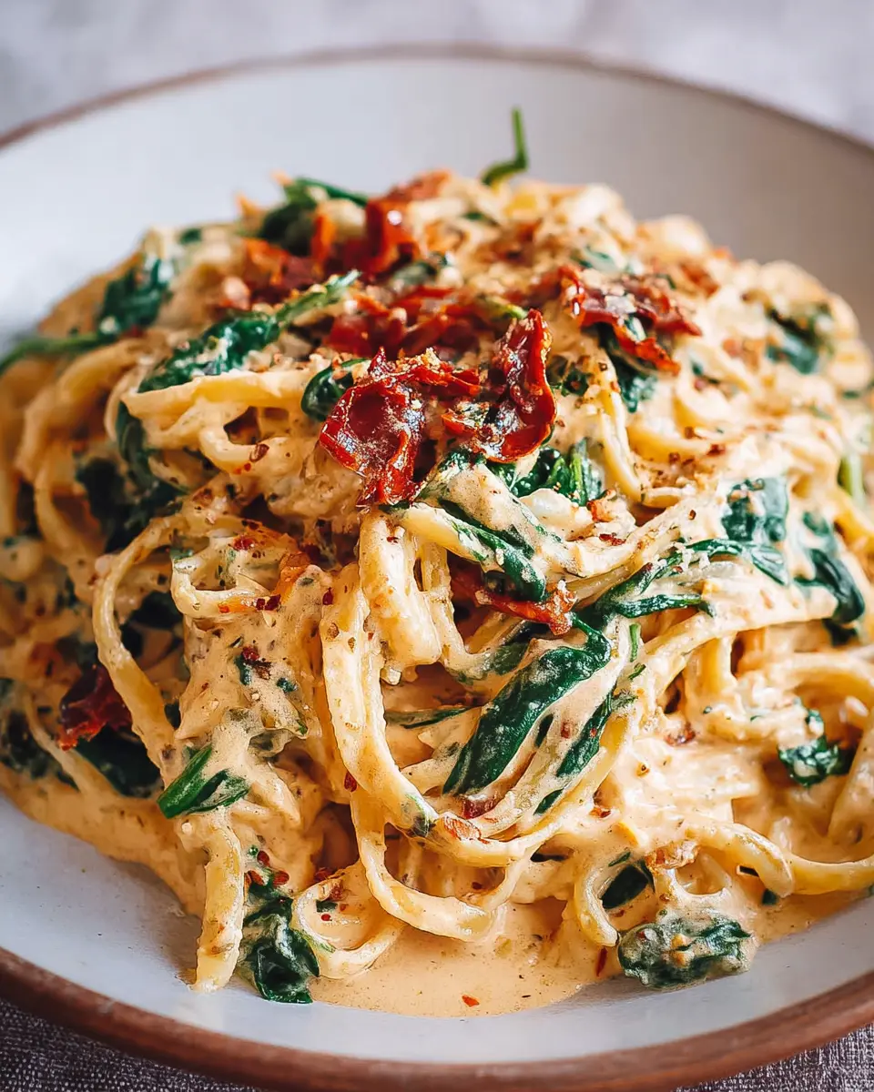 Linguine with Spinach and Sun-Dried Tomato Cream Sauce