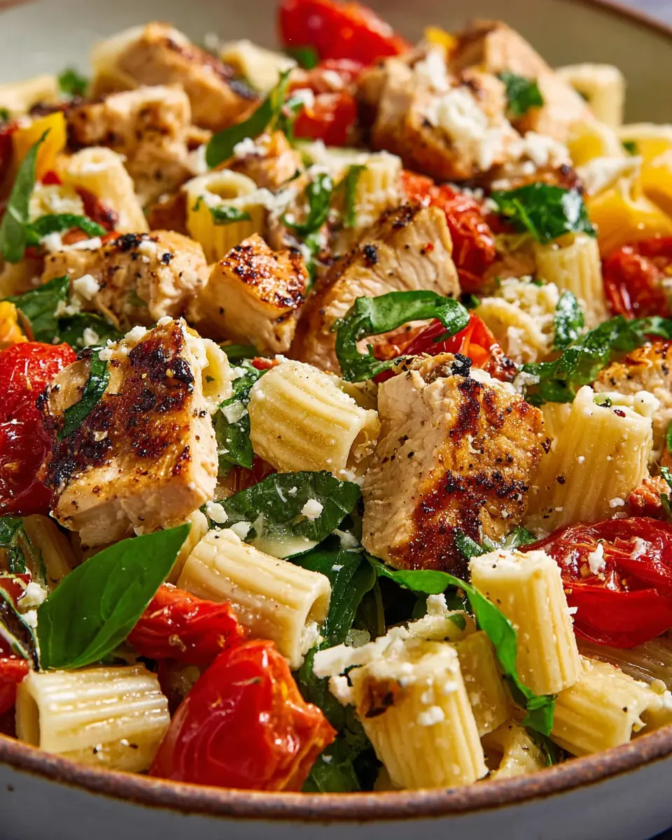 Transform your Mediterranean Chicken Pasta Salad into a unique main dish! Consider these fun serving ideas: