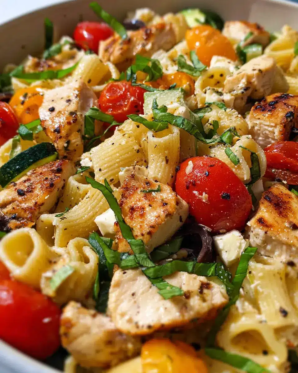 Absolutely! The Mediterranean Chicken Pasta Salad is a fantastic make-ahead option. You can prepare it a day in advance and store it in the fridge. Just be sure to keep the arugula and basil separate until you’re ready to serve for a vibrant, fresh taste.