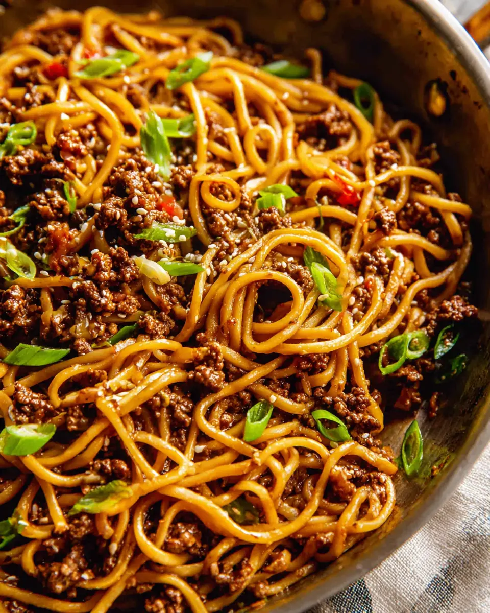 In just 20 minutes, you can have a hearty meal of Mongolian Ground Beef Noodles on the table. Perfect for busy weeknights when you want something satisfying without spending hours in the kitchen!