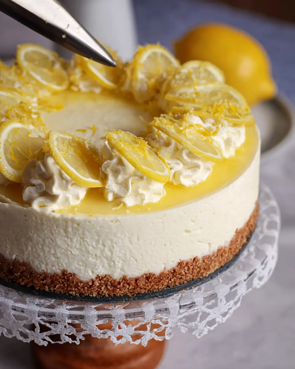 - Piping and garnishing: Pipe this cream onto the top of your cheesecake, and for a lovely touch, add lemon slices and a sprinkle of lemon zest.