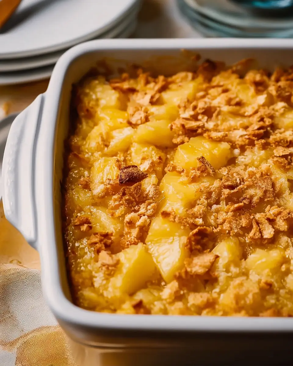 Pineapple casserole is typically served as a side dish, complementing savory meals like ham or grilled chicken. However, with its sweet and cheesy flavor, it can easily shine as a delightful main dish for a casual gathering or brunch. The beauty of pineapple casserole is its versatility—perfect for any occasion!