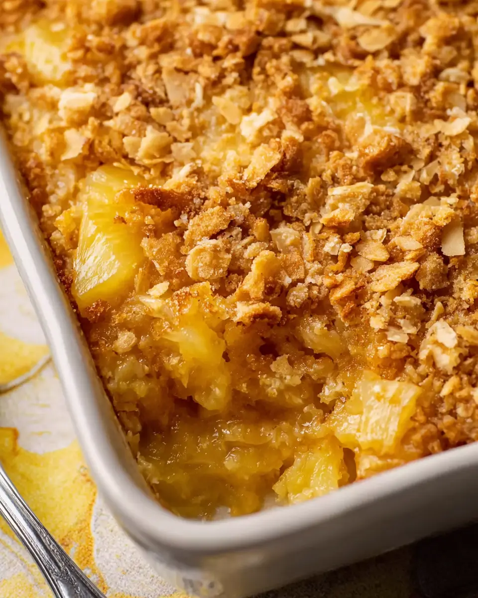 Absolutely! Pineapple casserole can be prepared a day ahead. Simply follow the recipe, assemble the dish, and cover it tightly with plastic wrap or foil. Refrigerate overnight. When you’re ready to bake, you may need to add a few extra minutes to the cooking time, as it will be cold from the fridge.