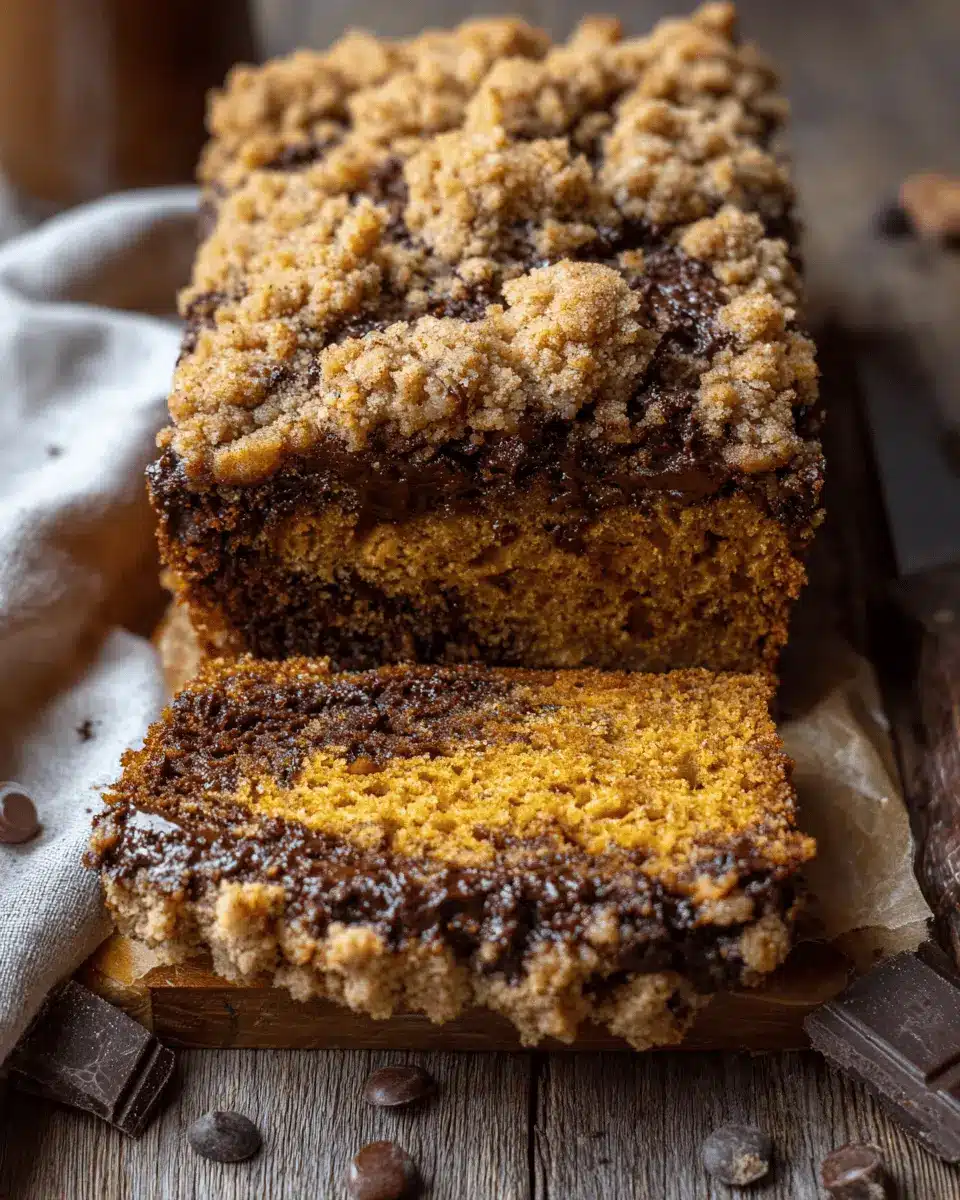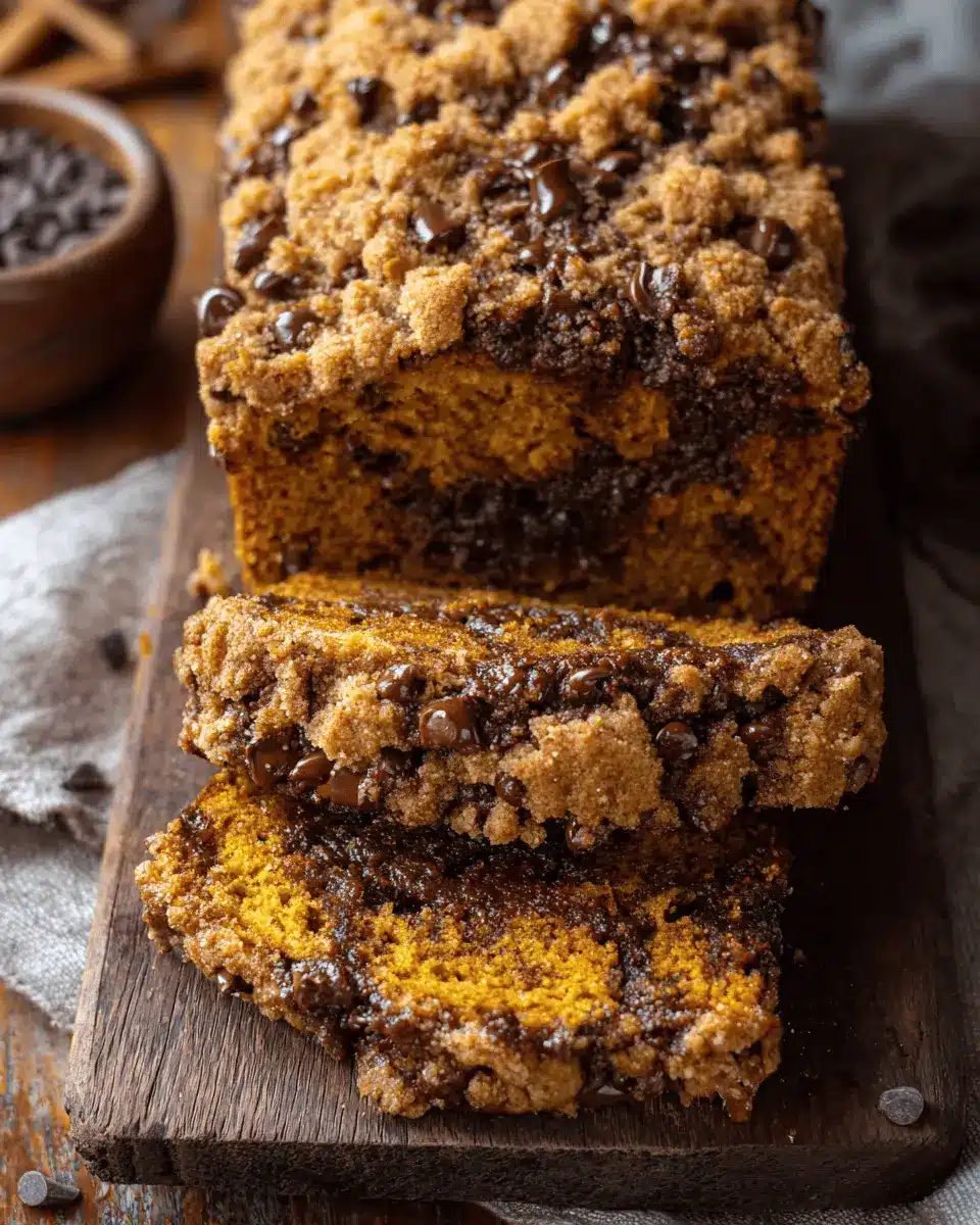 Enjoy the rich flavors of fall with this pumpkin chocolate chip streusel bread—a treat that's fit for any occasion!