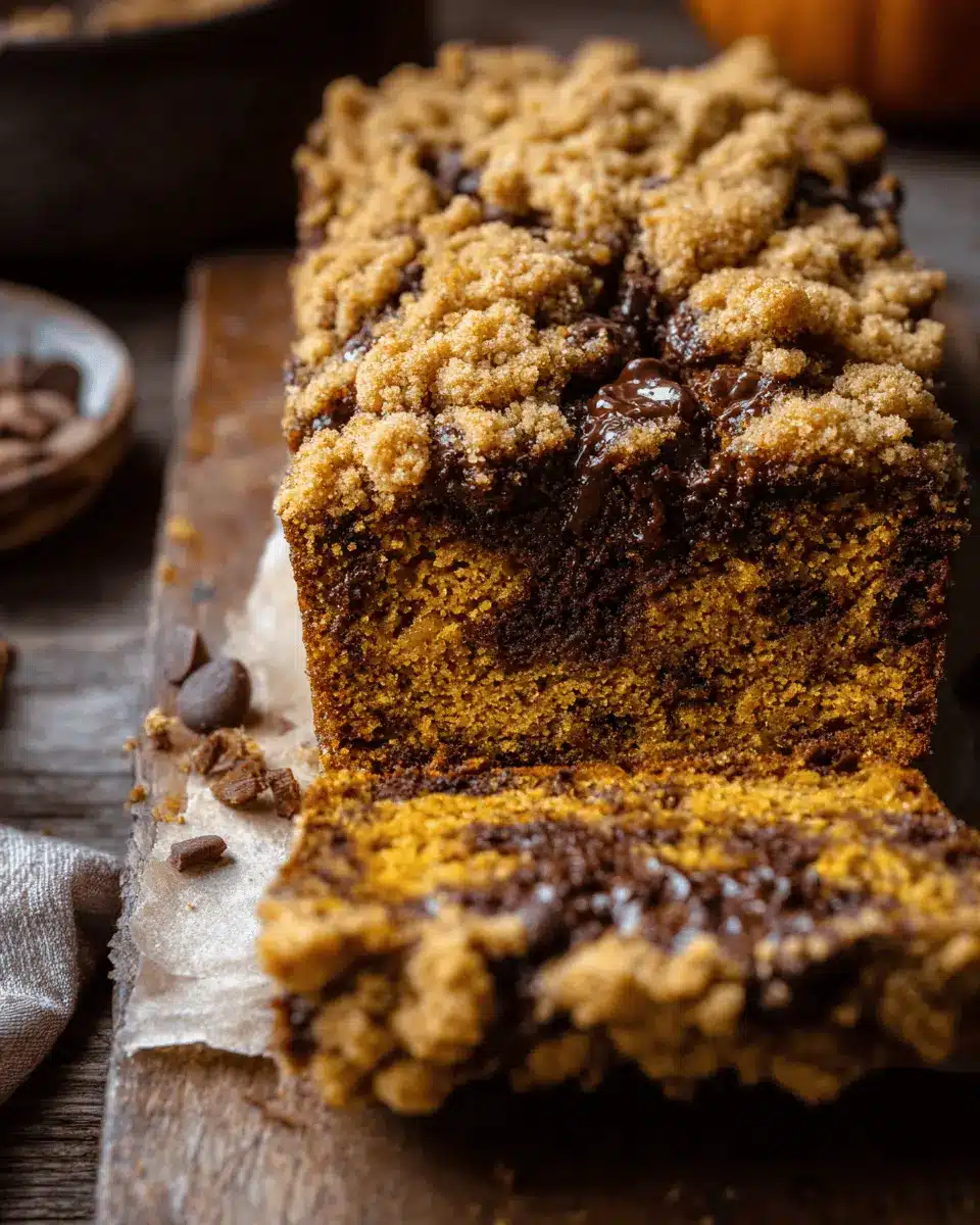 In conclusion, this pumpkin chocolate chip streusel bread is the perfect cozy treat for any season. Its rich pumpkin flavor, combined with melty chocolate and a crunchy streusel topping, creates an irresistible combination. Enjoy it warm with a cup of coffee or save it for dessert—either way, you'll love every slice! For more tips and variations, check out popular baking blogs like Minimalist Baker or Oh She Glows.