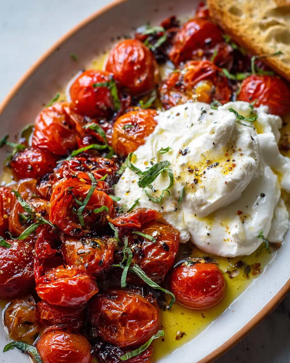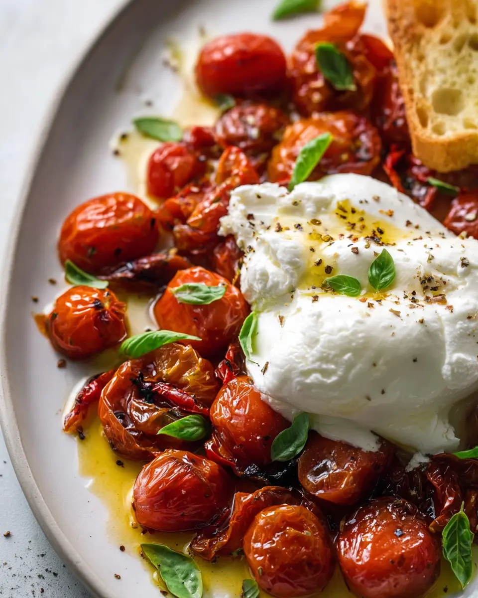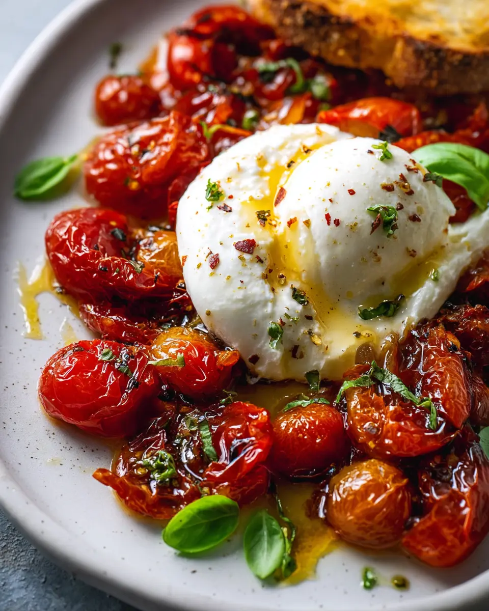 In summary, roasted tomatoes with burrata is a delightful dish that combines simple ingredients into a gourmet experience. Perfect for sharing or as a star on your dinner table, it elevates any meal. Don’t forget to pair it with some fresh bread for the complete experience!