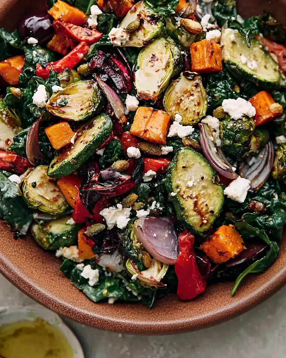 For the perfect roasted vegetable salad, aim for evenly sized pieces of your veggies. This ensures they cook at the same rate, achieving that wonderfully tender yet caramelized texture we all love. Don’t forget to preheat your oven adequately—425°F is your magic number! Arranging the veggies cut-side down will add an extra layer of flavor. If using a crowded pan, consider splitting into two for optimal roasting.