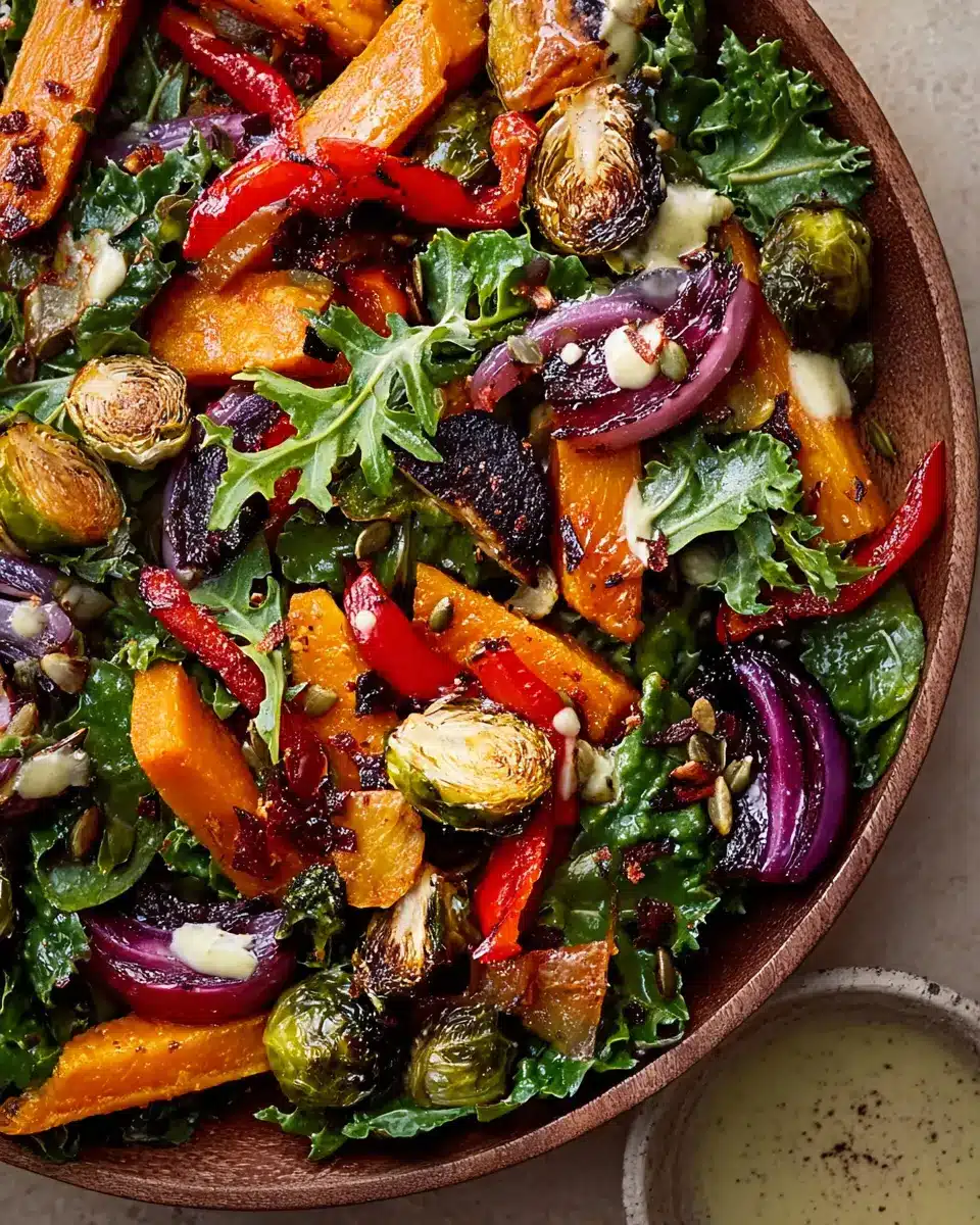 If you haven’t experienced the joy of a roasted vegetable salad, you’re in for a treat! This dish brings together the best of both worlds: vibrant seasonal vegetables and the satisfying heartiness of a meal. Roasting veggies like Brussels sprouts, sweet potatoes, and beets enhances their natural sweetness, creating layers of flavor that will make your taste buds dance. It’s not just about looks; the crunchy textures mixed with the creamy maple dressing are a revelation.