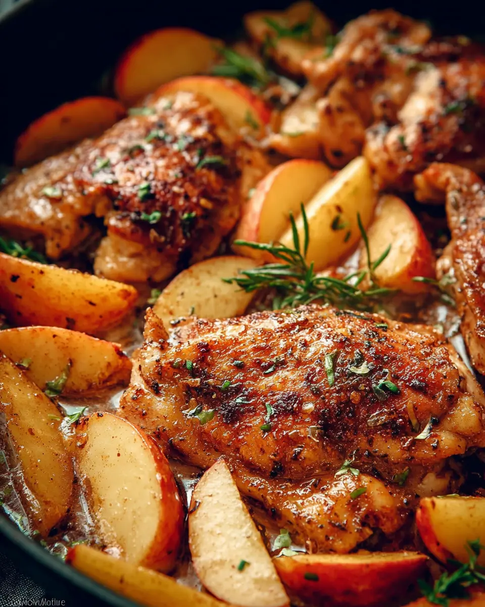 - Apple slices: About two cups of fresh apple slices (no need to peel) introduce a juicy, sweet element to the chicken.