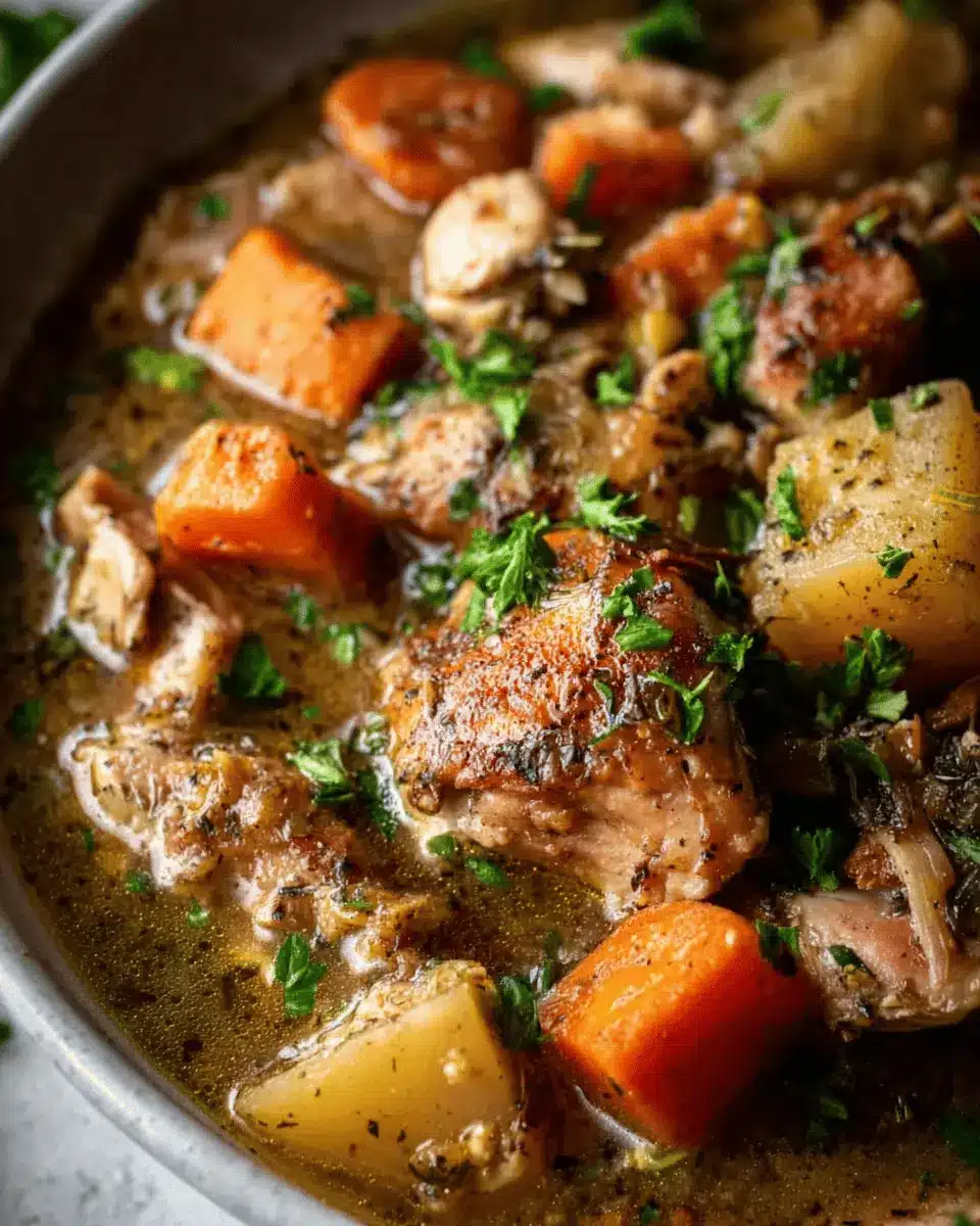 For a dreamy twist, add sliced mushrooms and a dollop of cream cheese or cashew cream at the end of cooking. This creamy mushroom chicken stew is not only decadent but also enhances the umami flavor profile. Just imagine savoring each spoonful as the creamy blend elevates the classic slow cooker chicken stew experience! You can also sprinkle fresh herbs, like thyme or parsley, for a burst of freshness.