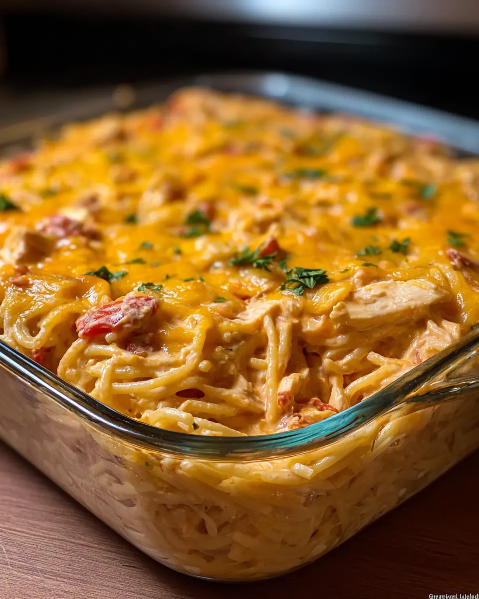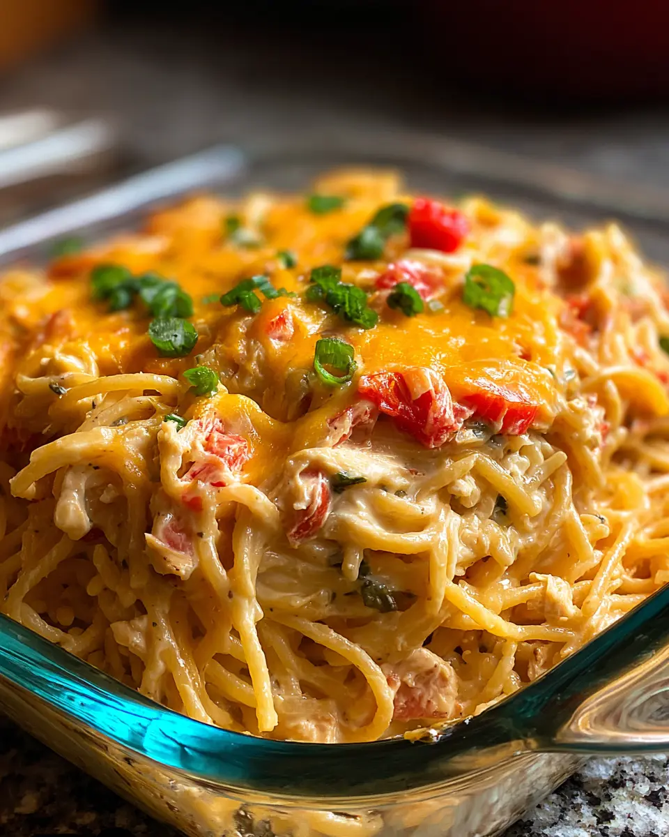 SPICY SOUTHERN CHEESY CHICKEN SPAGHETTI CASSEROLE