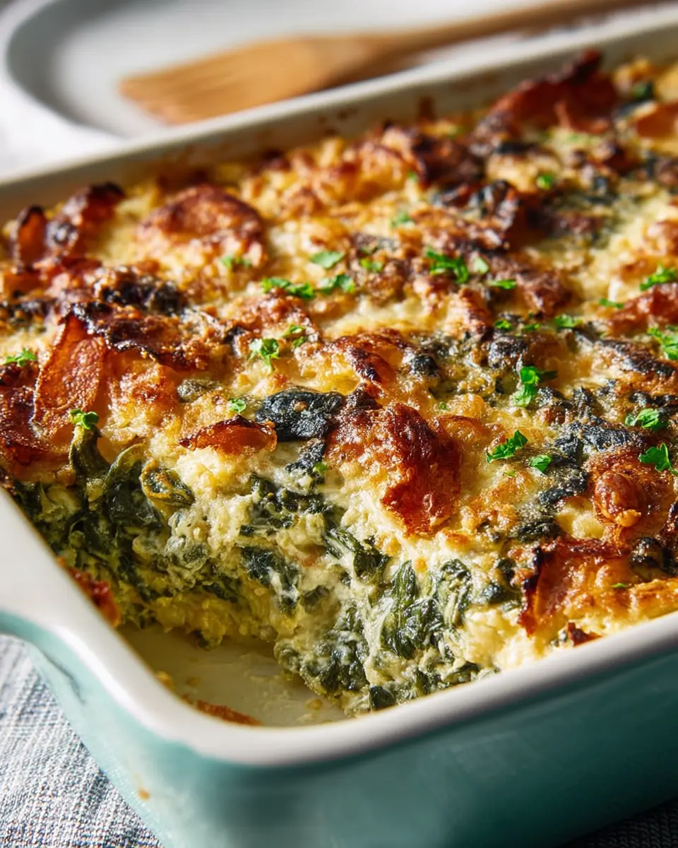 A spinach casserole serves as a versatile dish that can be enjoyed for breakfast, lunch, or dinner, and is perfect for potlucks or weeknight family meals. You can easily customize this dish by adding ingredients like turkey bacon or chicken ham for added protein. The creamy texture from the blend of cheeses gives the casserole an irresistible flavor, while the crispy fried onion topping adds that delightful crunch that keeps you coming back for more.