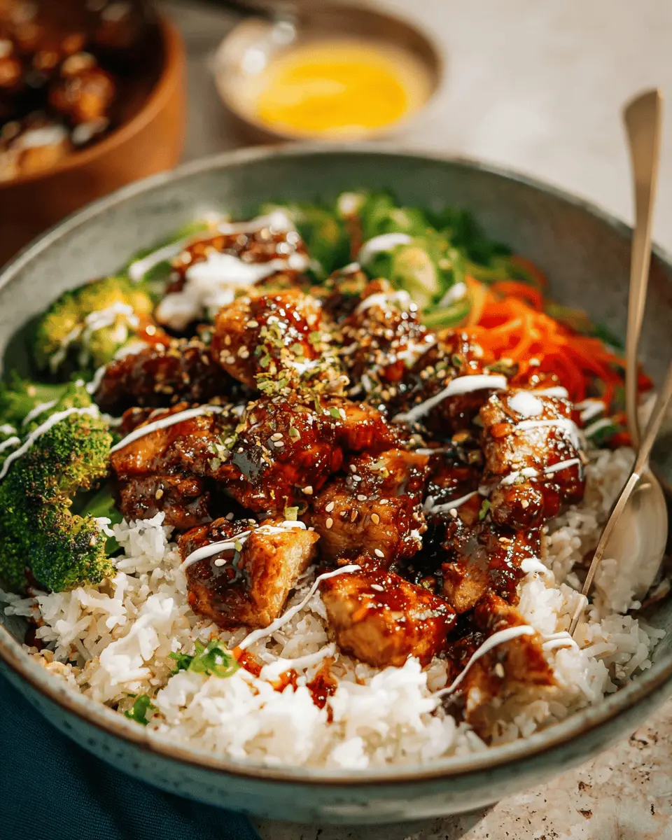 Transform your sticky chicken rice bowls into a vibrant vegetarian delight! Replace chicken with protein-rich tofu or tempeh, marinated in your favorite spices. The marinades can include soy sauce, garlic, and a touch of sesame oil for that umami depth. Roasted chickpeas also make an excellent crunchy topping. Enjoy the same luscious sticky sauce and drizzle with a creamy avocado dressing for a fresh twist!