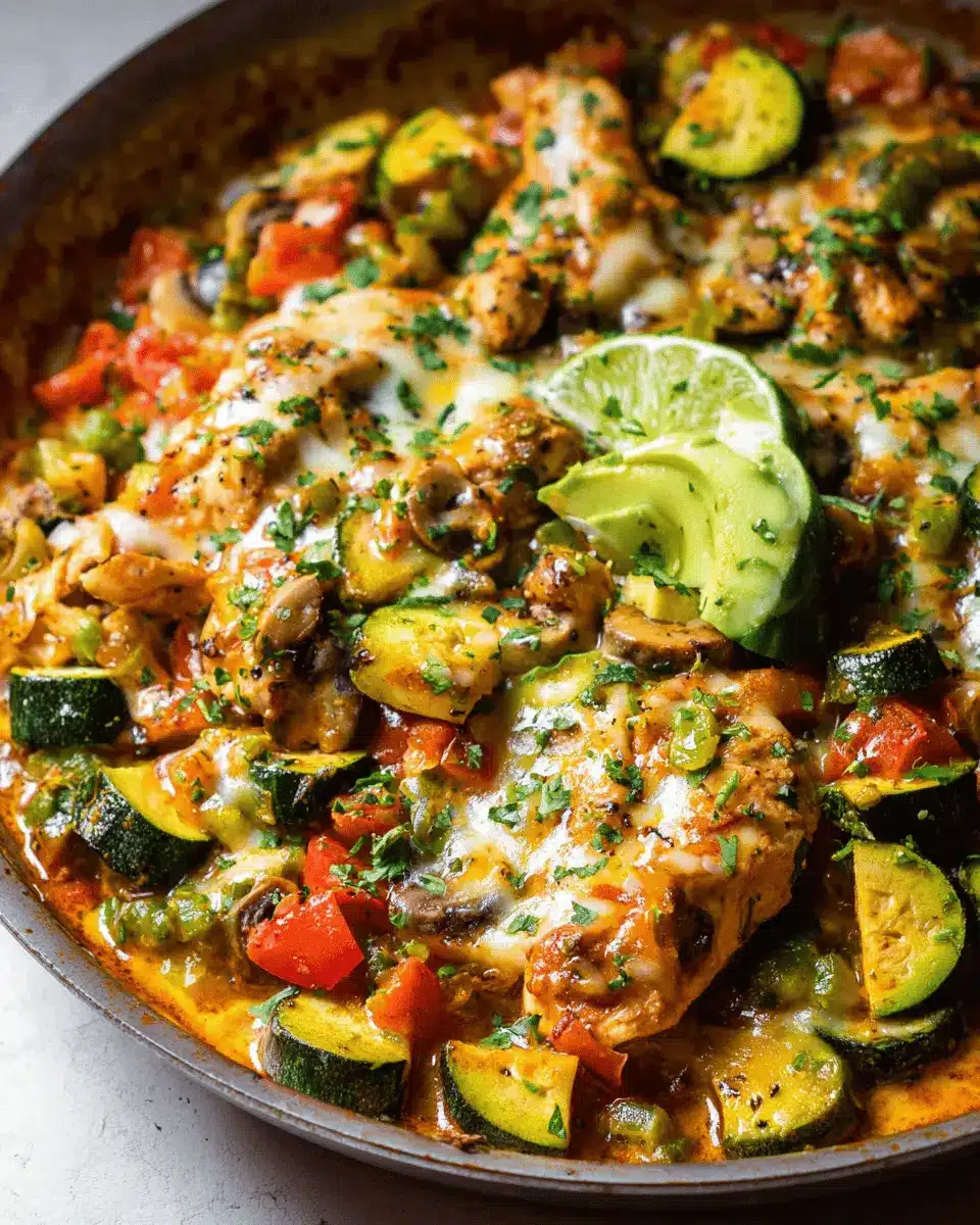 The Tex Mex Chicken and Zucchini Recipe truly shines when paired with a variety of sides. Serve it in bowls with a bed of fluffy brown rice or quinoa for a hearty meal. You can also wrap it in low-carb tortillas for a delightful burrito. For an extra crunch, top with crushed tortilla chips or serve alongside homemade guacamole. If you’re feeling adventurous, consider using the mixture as a filling for stuffed peppers or even tacos!