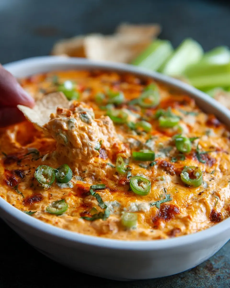 When stored properly in an airtight container, Buffalo Chicken Dip remains delicious for about 2-3 days. Just a tip—when reheating, add a splash of hot sauce or a dab of cream cheese to restore some creaminess.