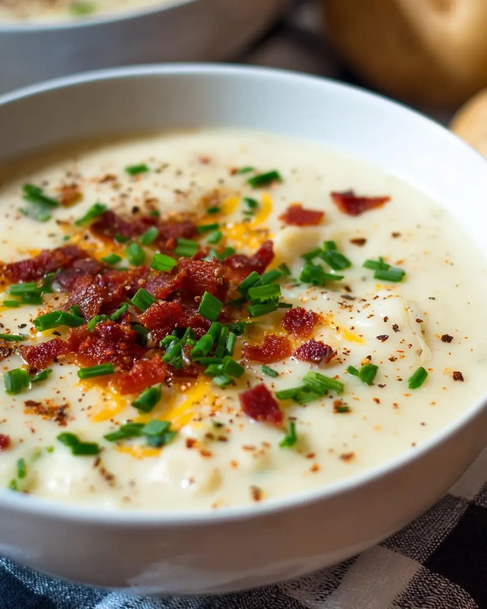 If you’re looking for a plant-based option, a vegetarian creamy potato soup is just as delightful! Simply replace the chicken broth with vegetable broth and omit the turkey bacon. You can enhance the richness with coconut milk or a generous dollop of cream cheese. Throw in some sautéed vegetables like leeks or carrots for a nutritious boost! This way, you’ll enjoy the same comfort and creaminess while keeping it meat-free.