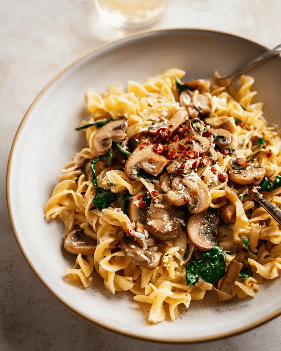 The cooking process is quite straightforward and will take around 20 minutes. While the pasta is boiling, you have plenty of time to sauté your mushrooms and spinach to perfection.