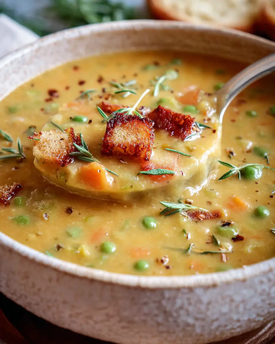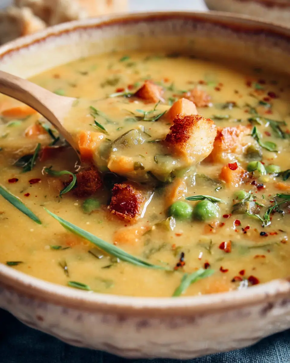 Finally, toss in those thawed green peas and let the soup simmer for a few more minutes until they’re heated through. This not only adds color but also a lovely sweetness that enhances the flavors beautifully. Taste and tweak your seasonings—feel free to add a pinch of red pepper flakes for some heat!