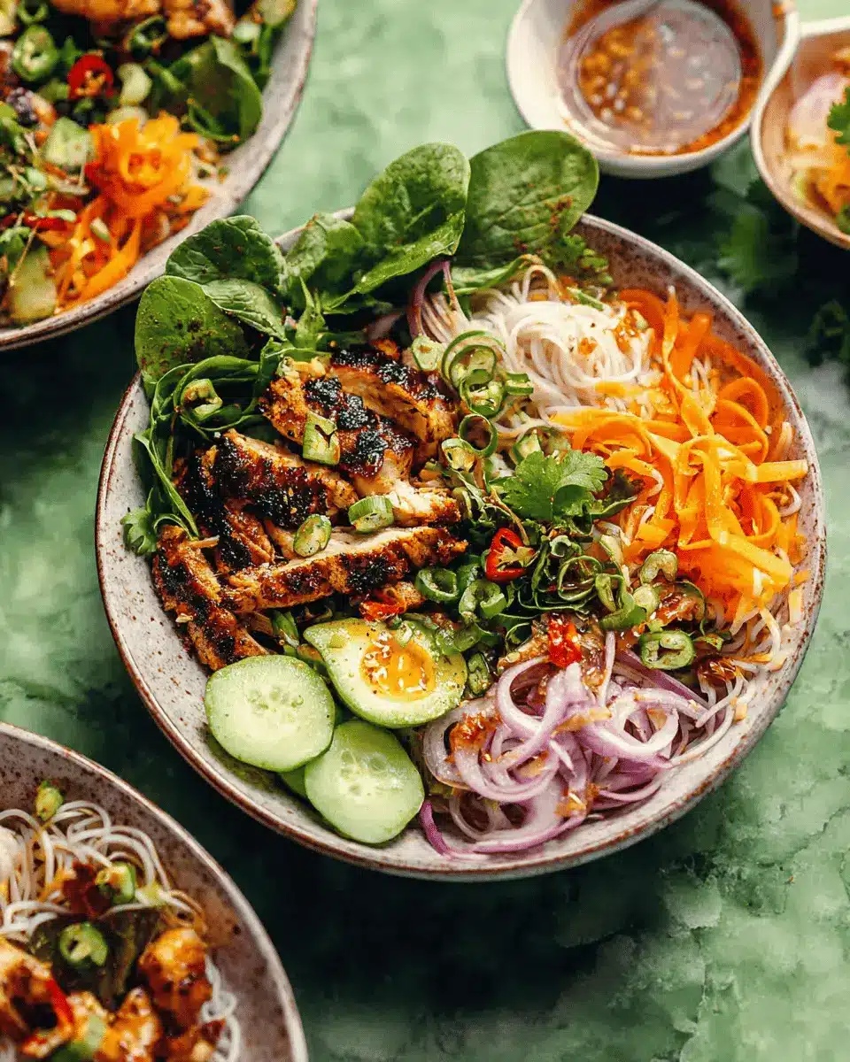 These vibrant, fresh ingredients make your Vietnamese-Inspired Chicken and Noodle Bowls not only colorful but also incredibly satisfying!